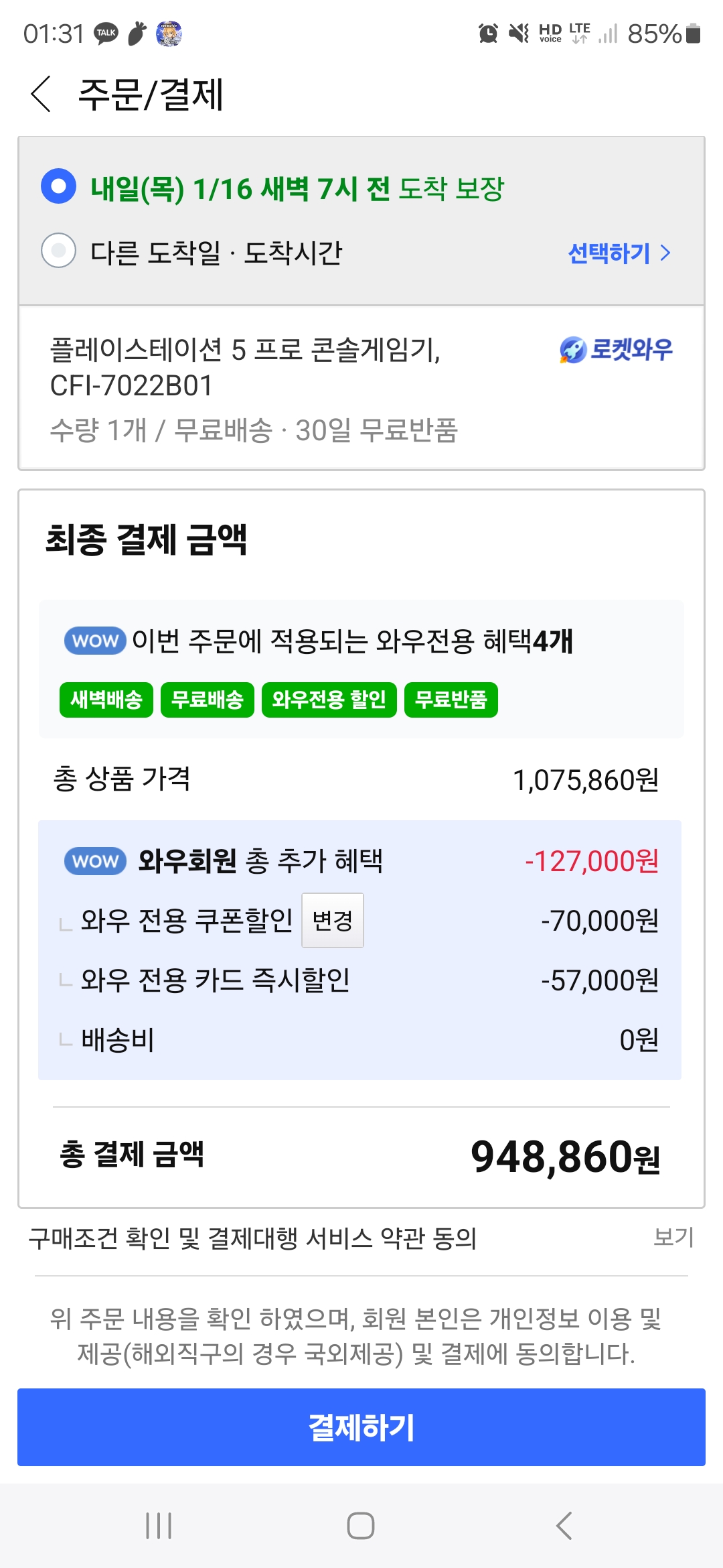 저같은 경우는 체감가가 948850 원 - 37954 원 = 910986 원 이었습니다. 쿠팡인 것을 감안하더라도 상대적으로 조금 합리적인 가격인 것 같습니다. | 25.01.15 10:21 | | |