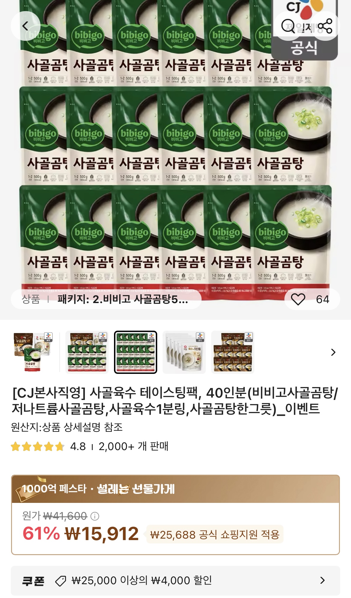 방금 AliExpress에서 찾은 상품이에요: ₩18,720 | [CJ본사직영] 사골육수 테이스팅팩, 40인분(비비고사골곰탕/저나트륨사골곰탕,사골육수1분링,사골곰탕한그릇)_이벤트 https://a.aliexpress.com/_opKB7vb | 25.01.20 12:02 | | |