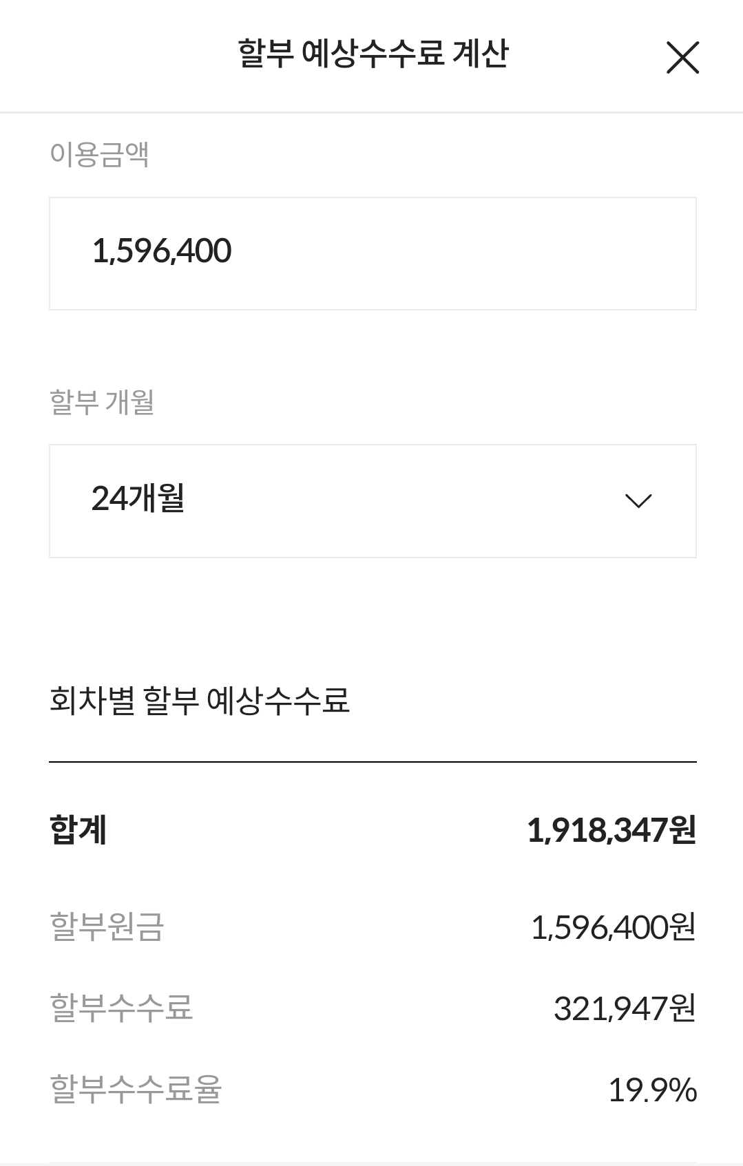 s25u 256을 24개월 할부 계산해보니 (계산기에 24개월까지밖에 없음) 수수료가 이렇게 나오네요 ㄷㄷㄷ 36개월이면 20% 넘을듯
