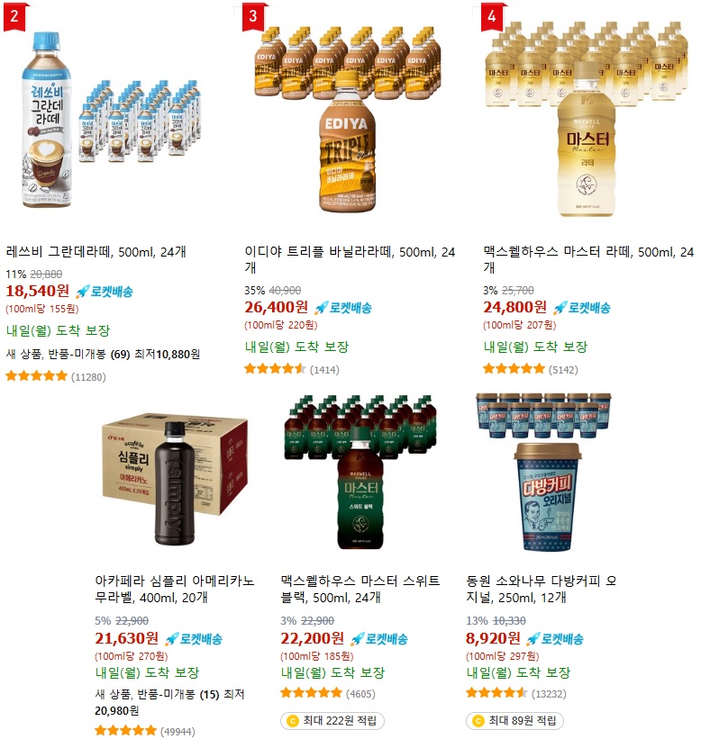 여담으로, 쿱항에서는 500ml 페트 커피를 1통에 1천원 정도. 혹은 브랜드에따라 그보다 저렴한 가격에 일상적으로 판매한다