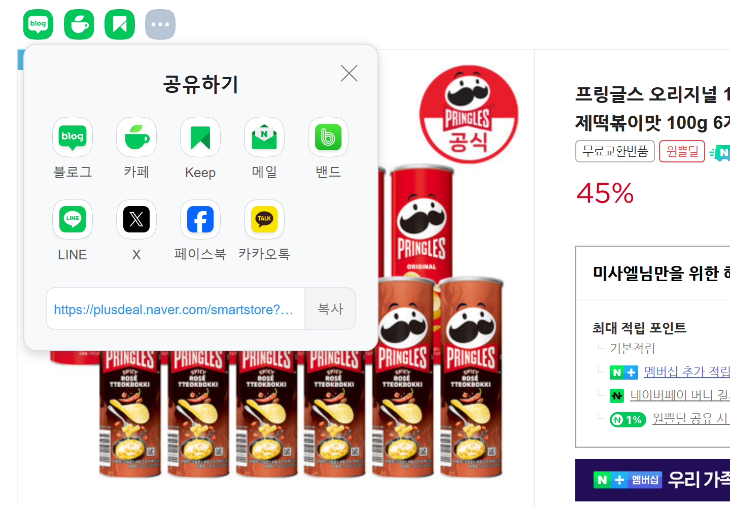 제품에 공유 버튼으로 누른거예요. 네이버 구매로 이어지는게 맞습니다. 저도 구매했어요. | 25.02.18 12:19 | | |