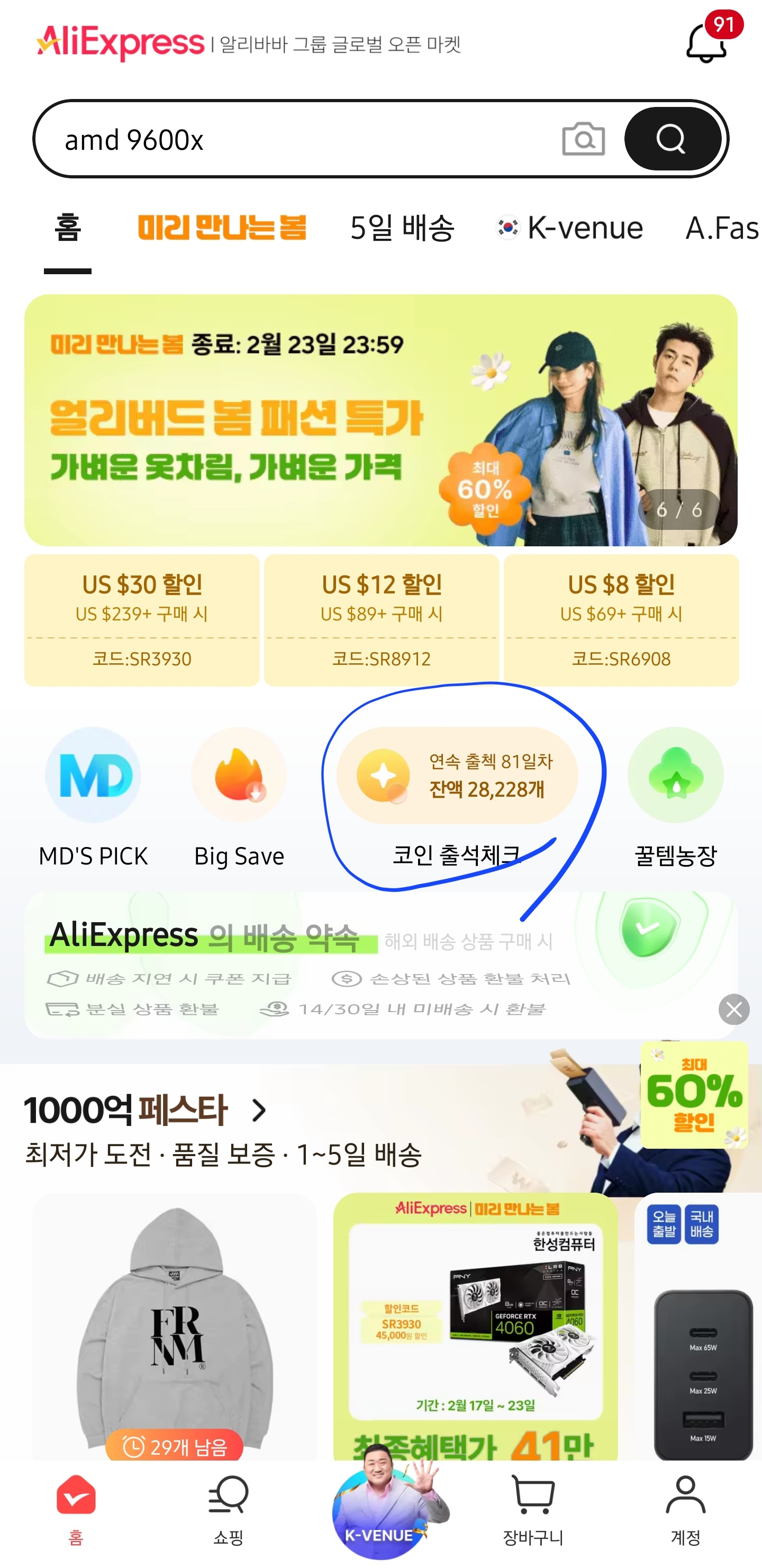 알리 로그인등으로 모으는 코인으로 할인받는거요! | 25.02.18 23:19 | | |