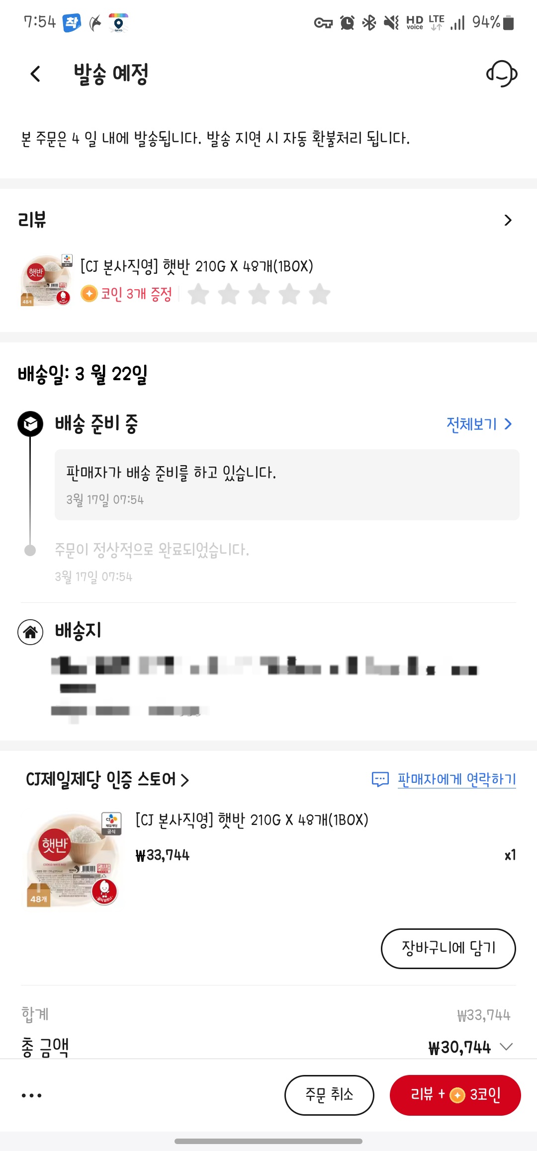 어플에서 햇반 검색하신거 같은데 그럼 4마넌 뜨는게 맞음 4만짜리 드가서 스토어로 드가시면 3.3짜리 파는거 잇음 그거 사면 쿠폰먹여서 3마넌됨 토스 경유하면 조금 더 할인되구요 | 25.03.17 08:50 | | |