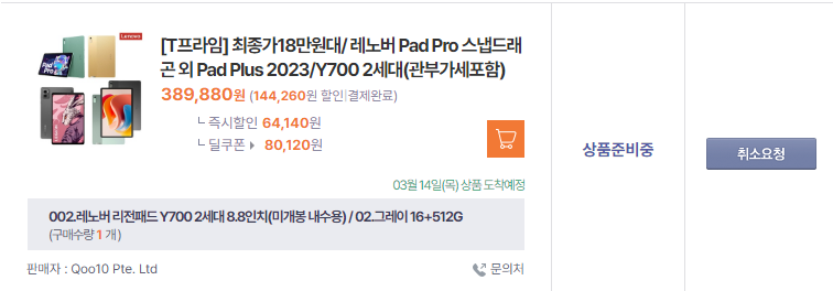 배송대기중일때인가 취소가 되는거 같군요. 이고 16에 512였음 걍 놔두는데256이라... | 25.03.22 15:59 | | |