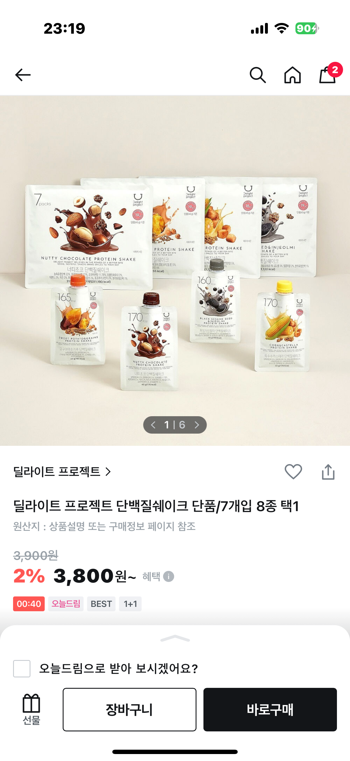 단백질 쉐이크 4개 7600원 4600원에 구매 가능합니다. 픽업으로 주문시