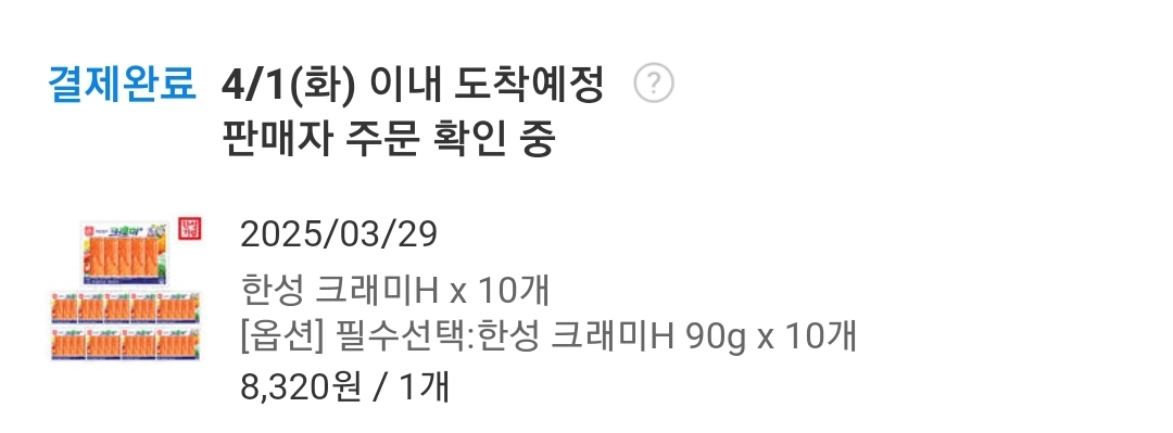 [음식] [11번가] 한성 크래미H 10개 (8,320원) [13]