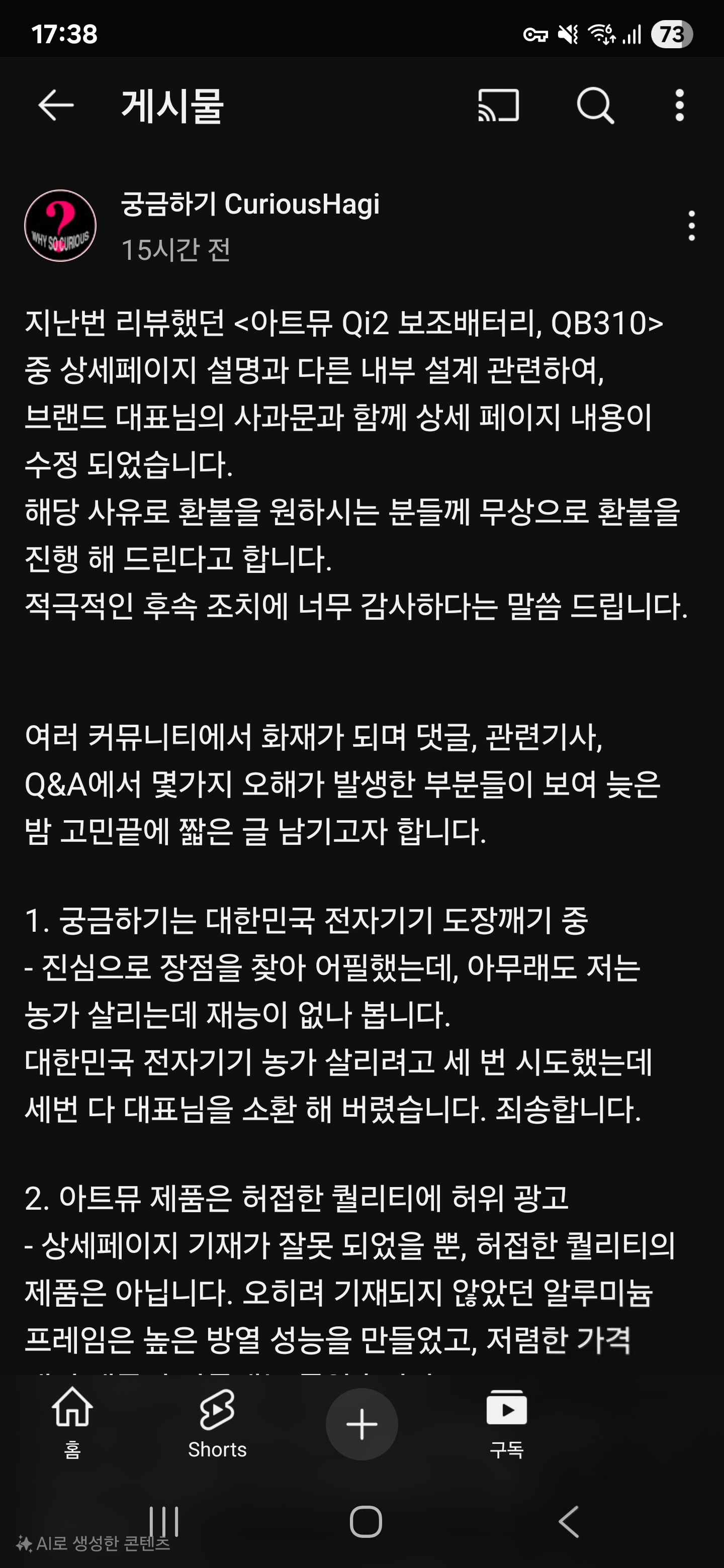 자체 개발 해서, 직접 생산한 물건에 대한 사과문에 쓰는 내용은 아니긴 하죠 | 25.04.29 16:09 | | |