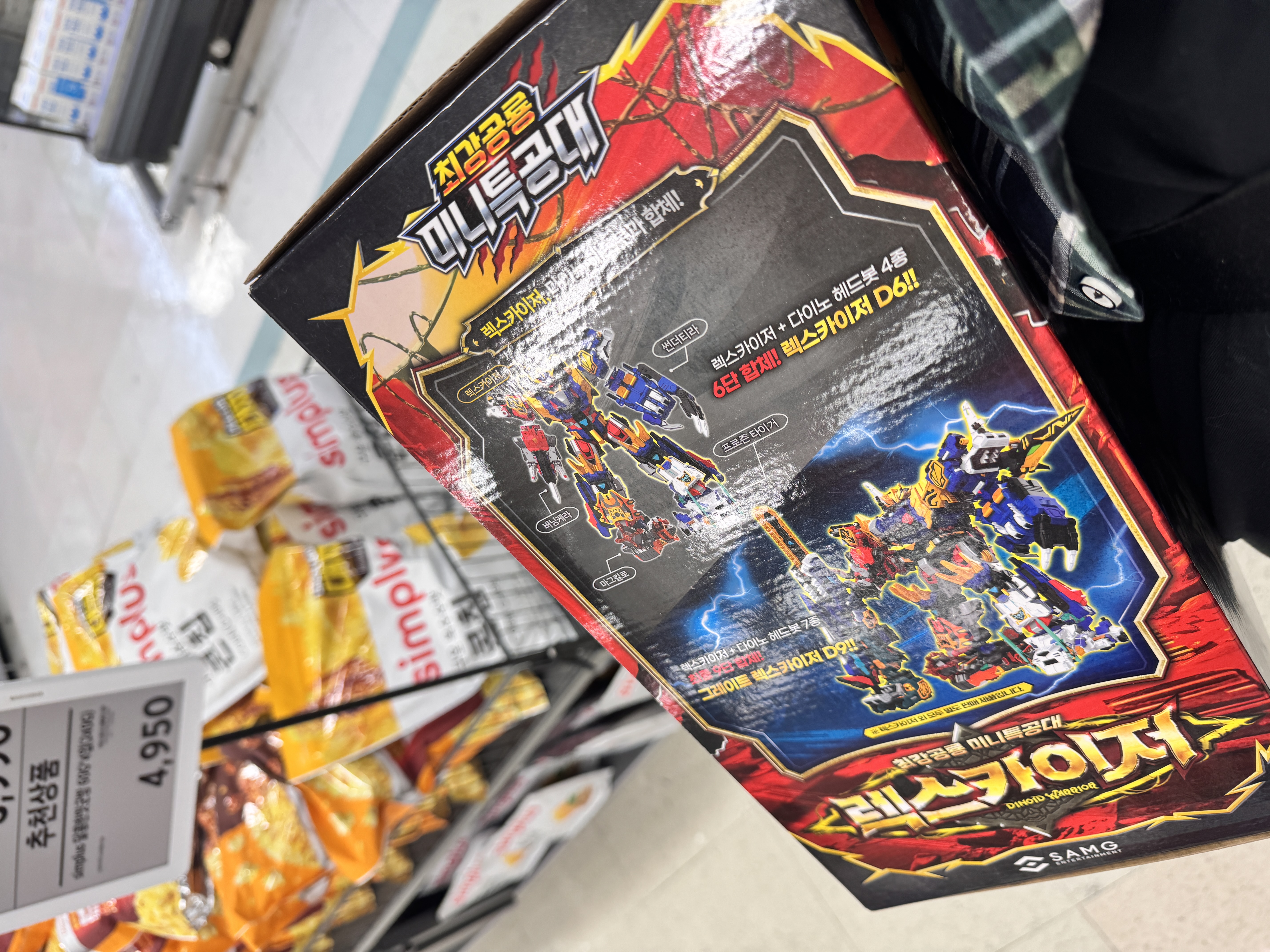 https://bbs.ruliweb.com/family/242/board/300017/read/2375293?search_type=subject&search_key=%EC%B5%9C%EA%B0%95%EA%B3%B5%EB%A3%A1 미니특공대 새로운 시즌의 주역 메카인데 처음에 자동차와 티라노가 합체한 코어메카 렉스카이저가 있고 그뒤에 추가로 4대와 합체한게 렉스카이저 D6(본문의 상품입니다) 나중에 나올 예정인 3대가 추가되서 그레이트 렉스카이저 D9 이 됩니다 | 25.05.02 13:39 | | |