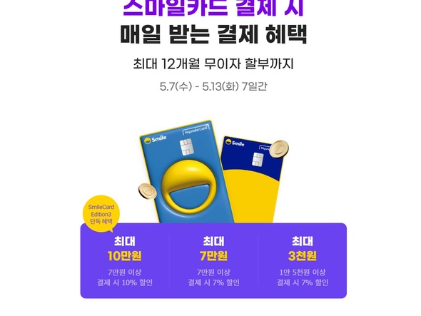 *스마일카드의 경우 7만원 이상 결제시 7% 할인 (최대7만원 할인)