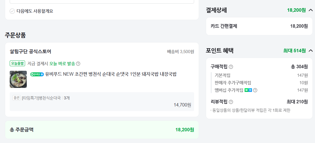 일단 순대국은 추천하고 돼지국밥은 추천까진 못 함 610그램 육수포함 된 버전과 농축액으로 된 180그램짜리 둘 다 맛은 비슷