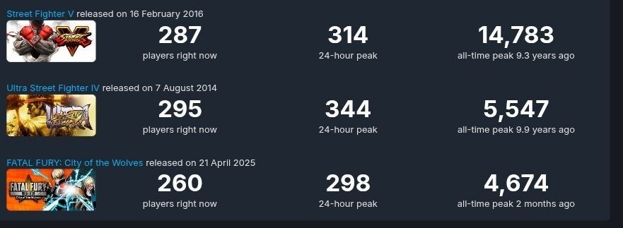 현재온라인수 스파6:18,000명, 철권8:3,500명, 길티기어:1000명, 아랑전설:44명 ㅋㅋ