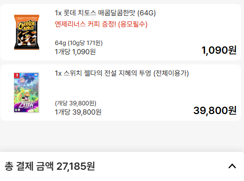 4만 원 이하인 게임도 과자 하나 추가하면 쿠폰 먹히네요 지투 밀봉 싸게 잘 샀습니다