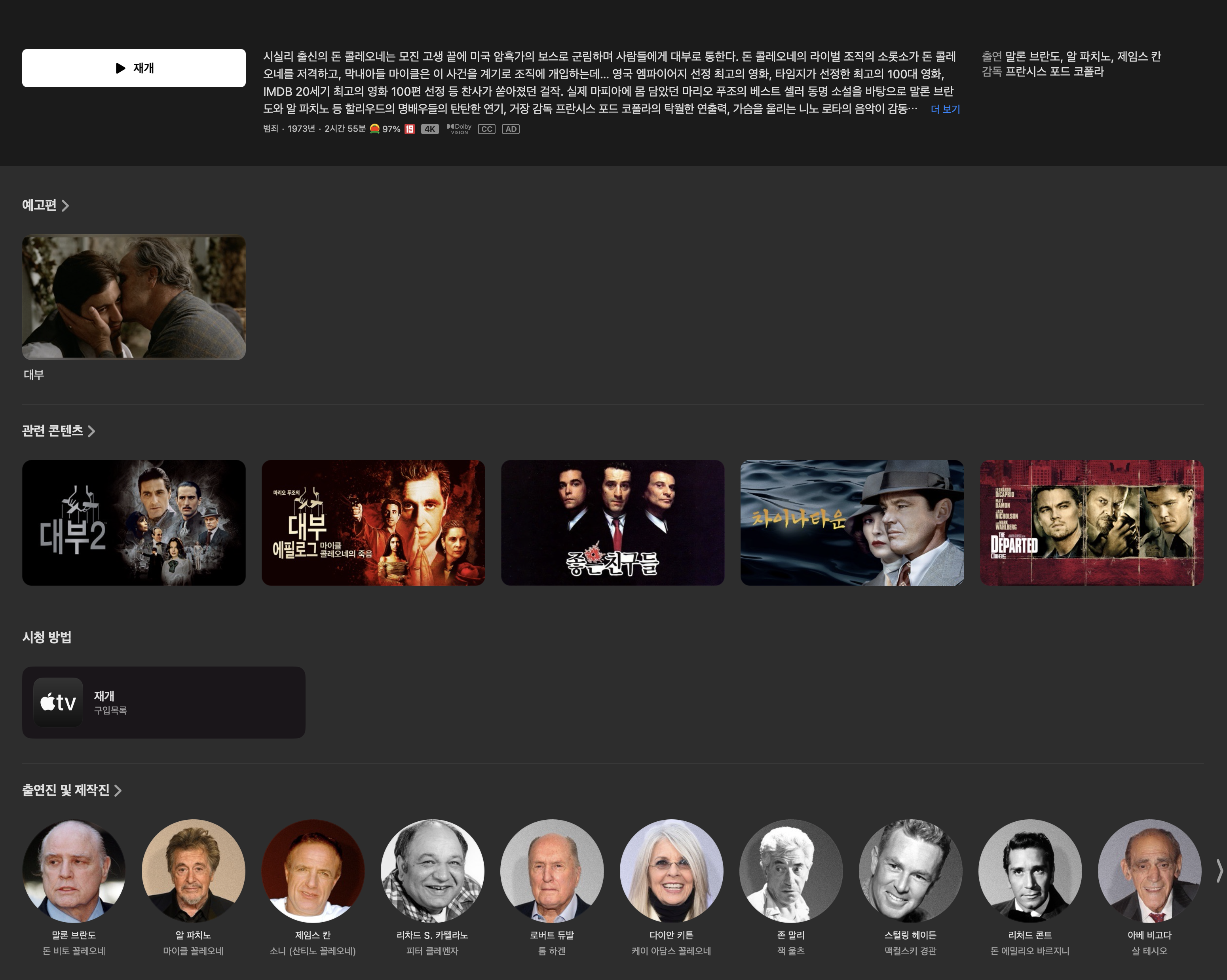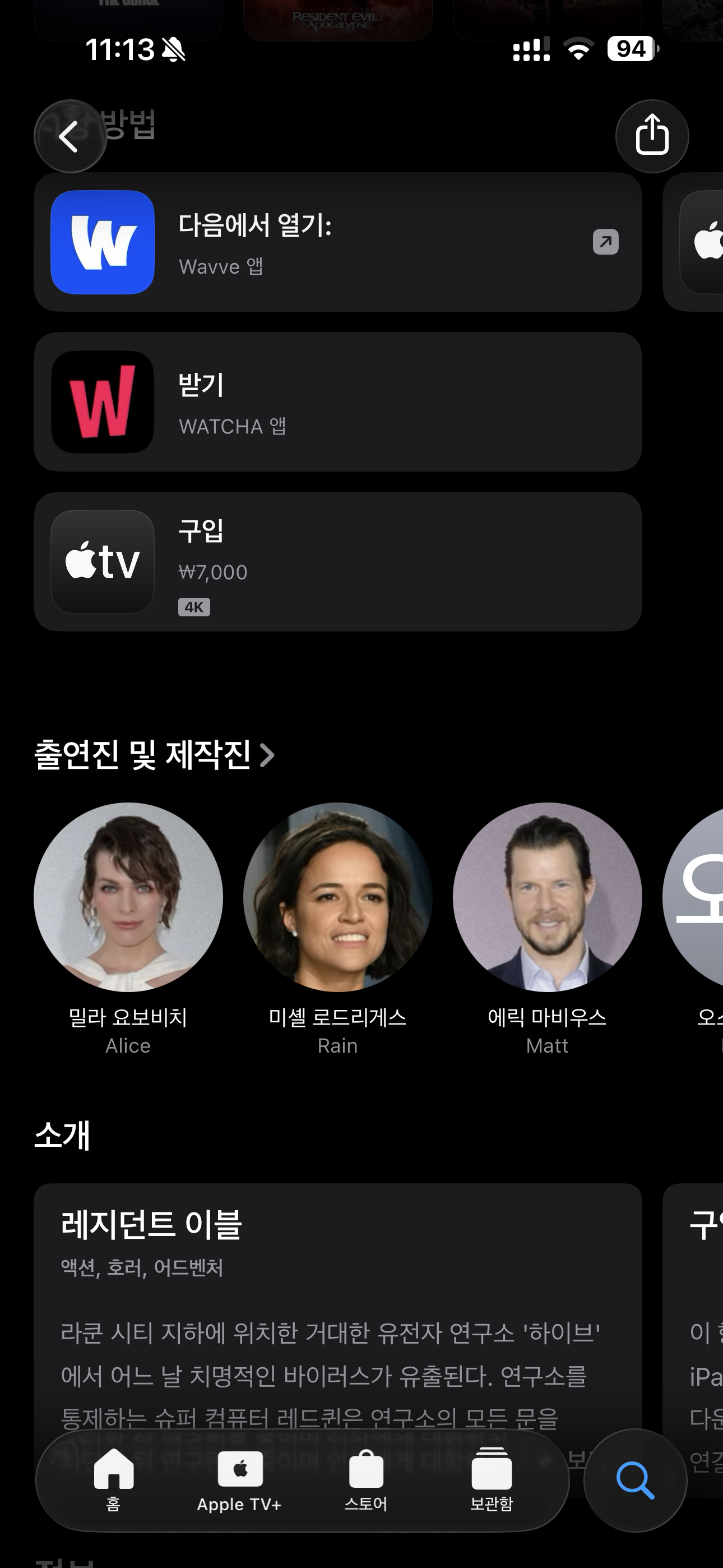 에플 스토어가 좋은게 화질이 OTT 대비 제일 좋음. 비트레이트 높고... 기계를 조금 가리긴 한데 Apple TV 4k 있으면 좋았쓰...