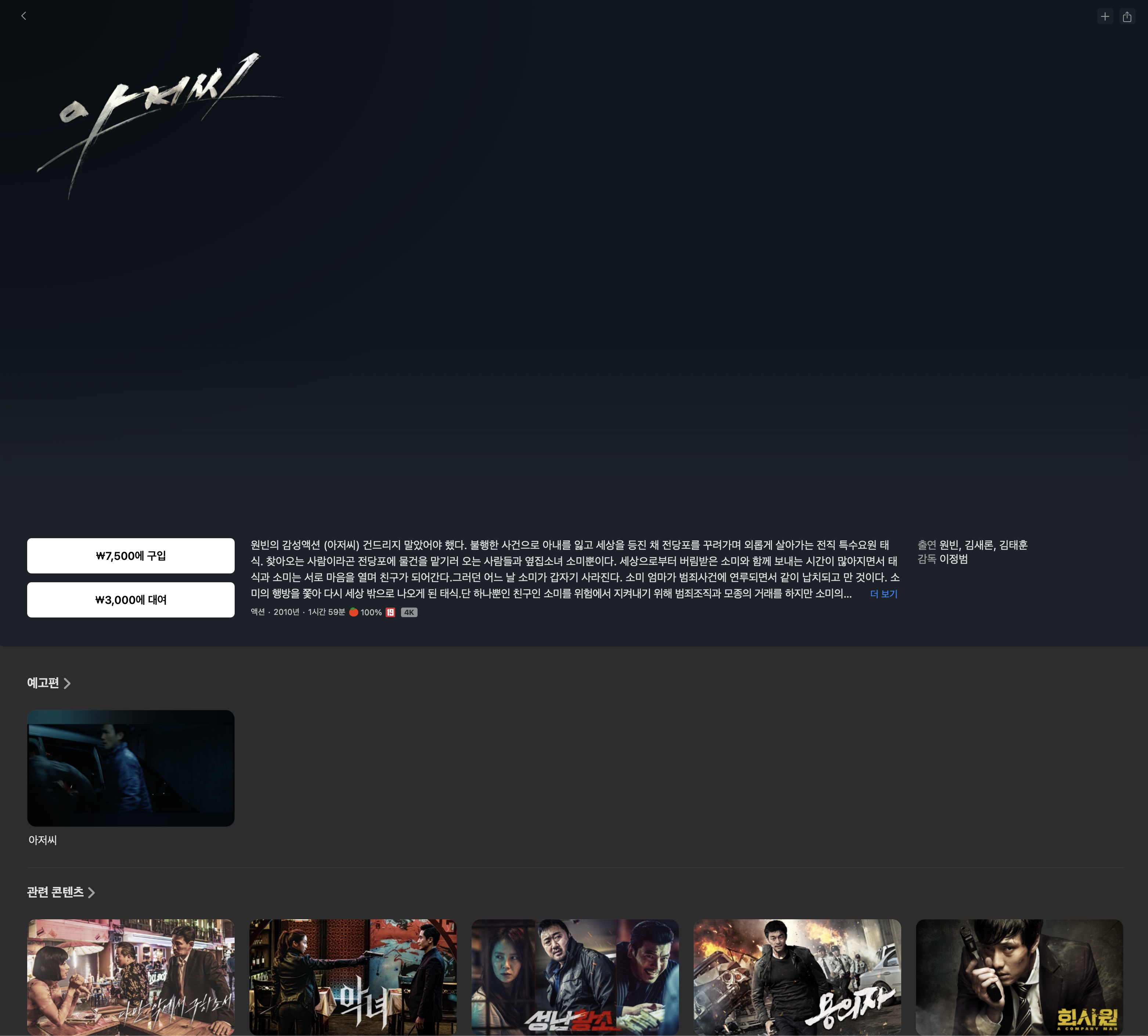 <모가디슈>만 4K 이고 류승완 감독의 다른 영화들은 HD 입니다. 아저씨 감독의 다른 작품인 <우는 남자>도 HD 입니다. 배급사...를 기준으로 약간 찾아봤지만, 공통점은 못찾았습니다. 조금씩 4K로 바뀌는 건가 싶네요... | 25.10.01 14:41 | | |