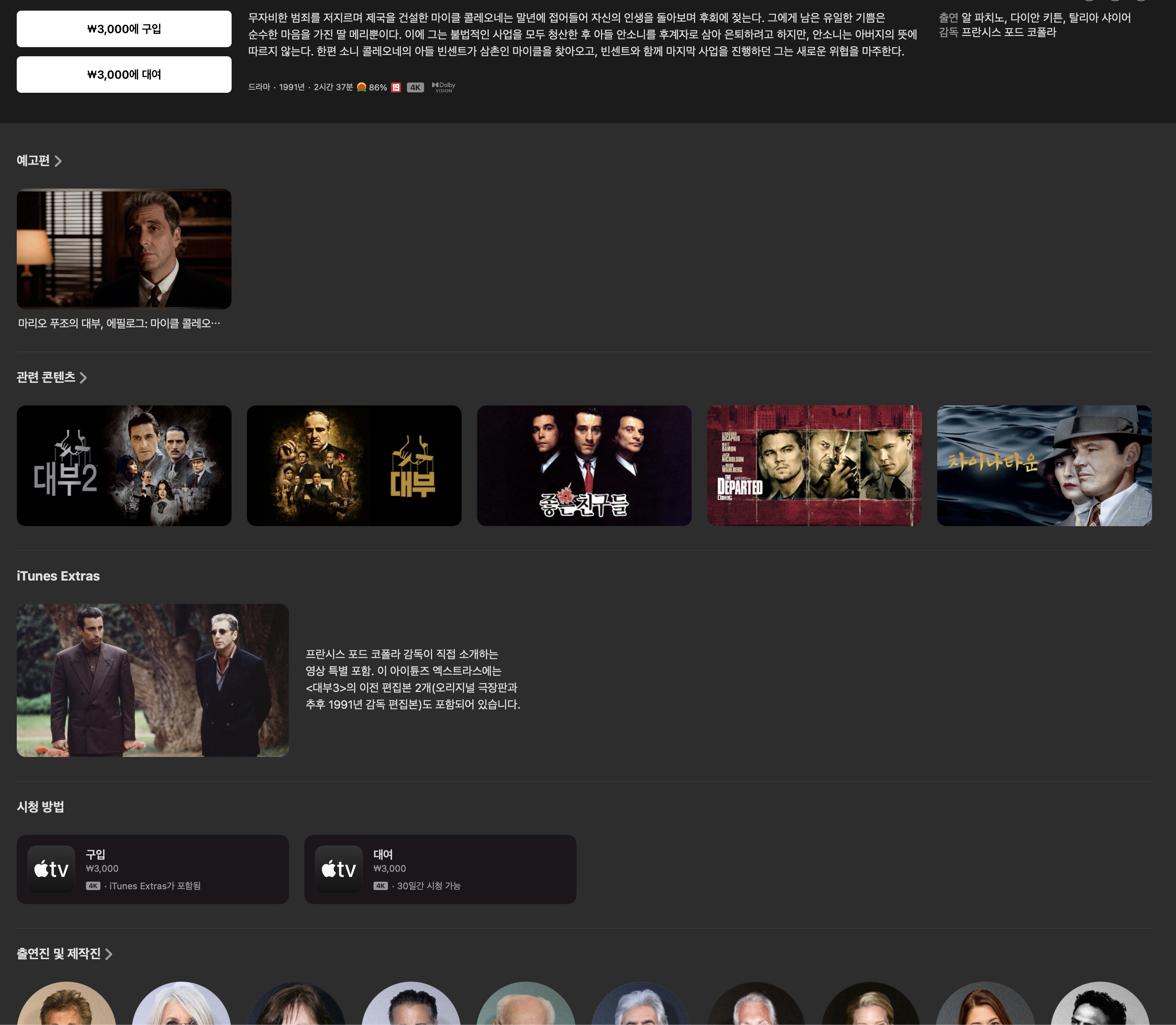 지금 확인해 보니 Extra가 없는 작품들이 많군요? 제가 구매한 위 리스트 중에서는 대부1, 2 만 있고 나머지 작품들은 없습니다.