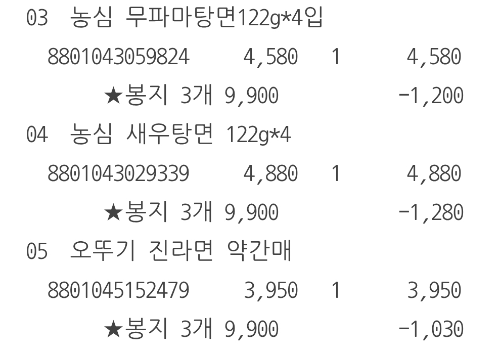 봉지라면 3개에 9900원에 새우탕도 포함이였으면 좋겠는데 ㅠ