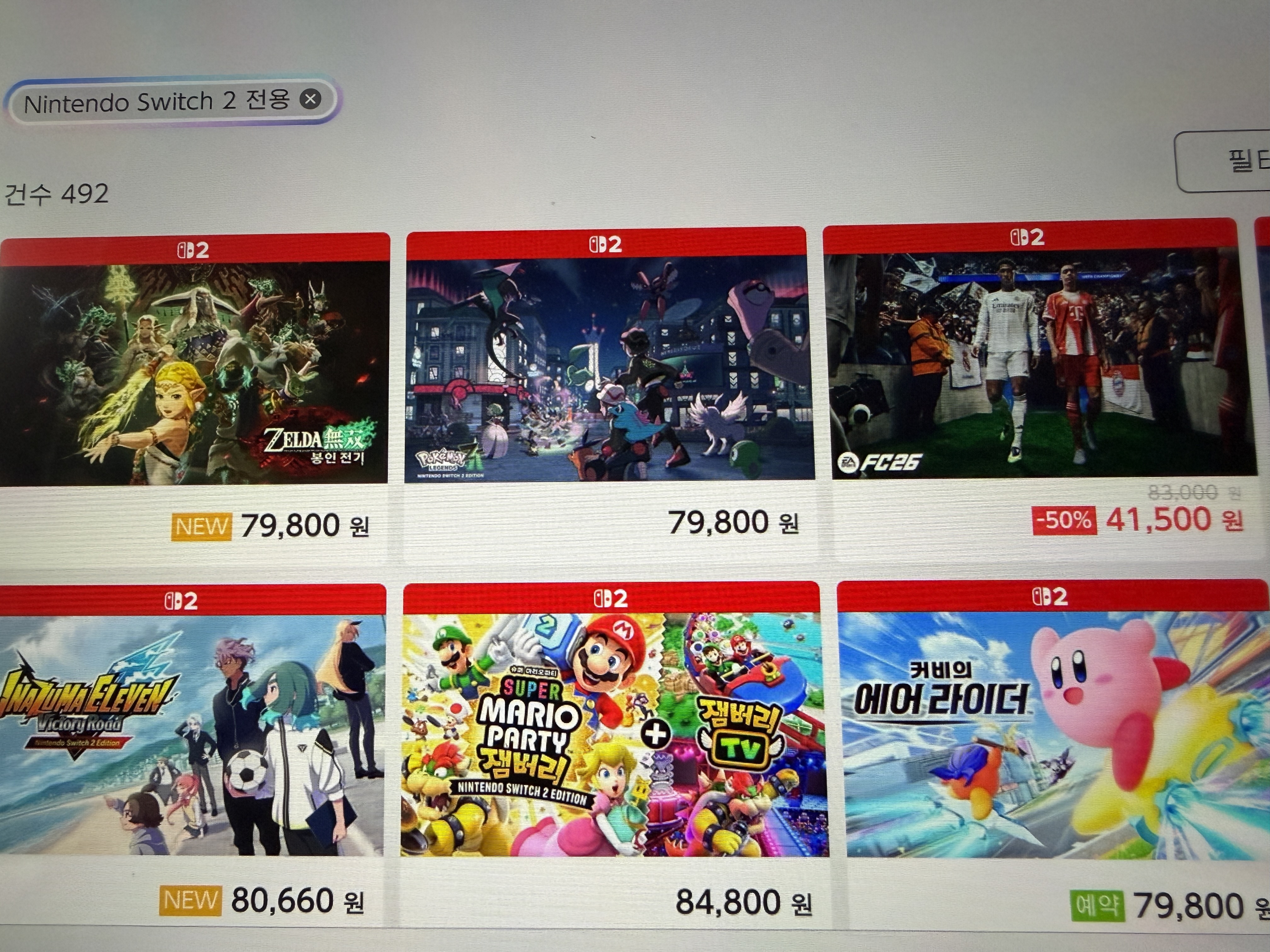 저거 492개는 [DLC + 듯보잡 인디게임들+기본게임+디럭스+얼티밋+업그레이드 패스] 모두 포함되어 있는데 뭔 놈의 게임이 492개라는 말도 안 되는 소리를 하시는 건가요? 기기에서 스위치 2 전용으로 배너 찍고 들어가면 172개 나오는데 여기에도 아직 출시도 안된 게임들 예판도 들어가 있고 업그레이드 패스 있고 세트상품 있고 중복 제외하면 사실상 즐길만한 건 정말 얼마 안 됩니다. 이게 스위치 2 만들어 놓고 닌텐도가 방치하고 있는 수준이지 인간적으로 제품 출시 때 동키콩 이랑 마리오카트 말고 독점작 얼마나 됩니까? 스위치에 다운그레이드로 이식한 게임들까지 제외하면 정말 게임 없는 게 맞아요. 스위치1 때 하고 비교해 보시길 처참한 수준입니다. | 25.11.18 20:58 | | |