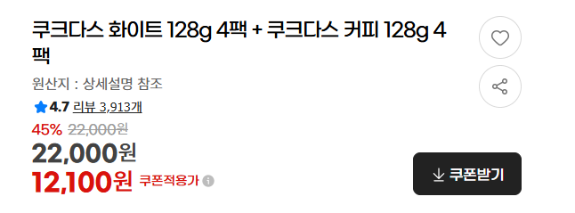 쿠팡 들어가서 쿠크다스 치기만 해도 상단에 나오네요. 임박도 아닐 테고, 커피도 없는 깔끔한 화이트 제품으로다가 | 25.11.28 22:09 | | |