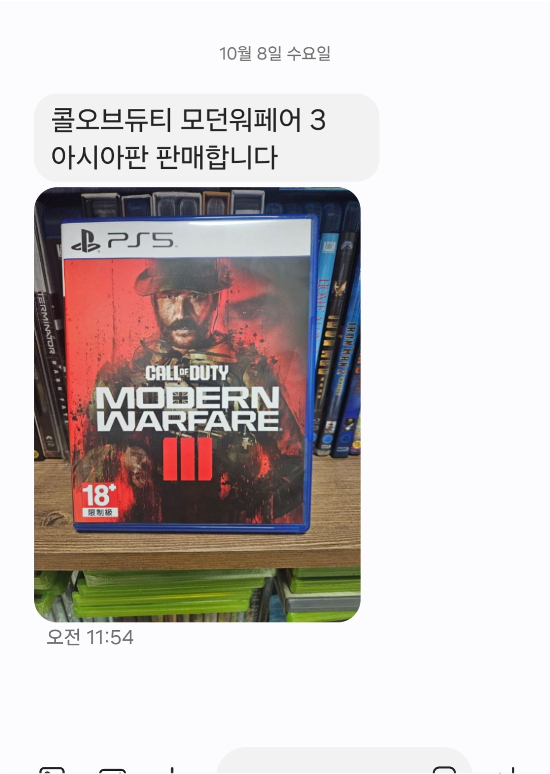좀 전에 콜오브듀티 3 구매 한다고 글 올린 후 바로 사진과 문자가 왔는데 사진이 낯이 익어 찾아 보니 작년 24.12.28일에 다른 분이 거래 완료 된 사진을 보내 왔네요.