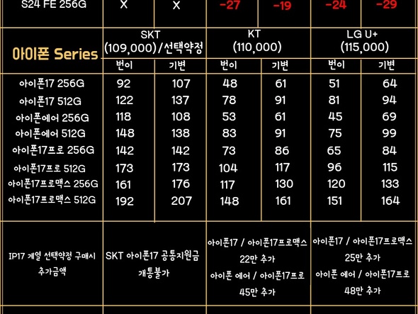 [종합] [휴대폰성지]⭐10월 24일 실시간 휴대폰 시세표⭐