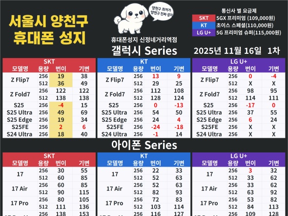 [SKT] [양천구] 서울시 양천구 휴대폰성지 1등 시세표