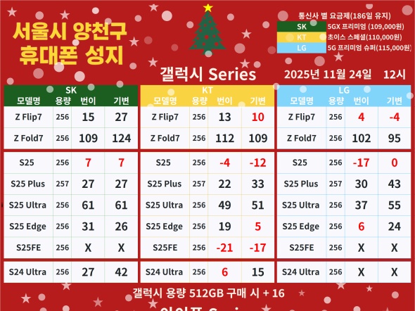 [종합] [양천구] 휴대폰성지 11월 24일 시세표【카드X】【반납X】