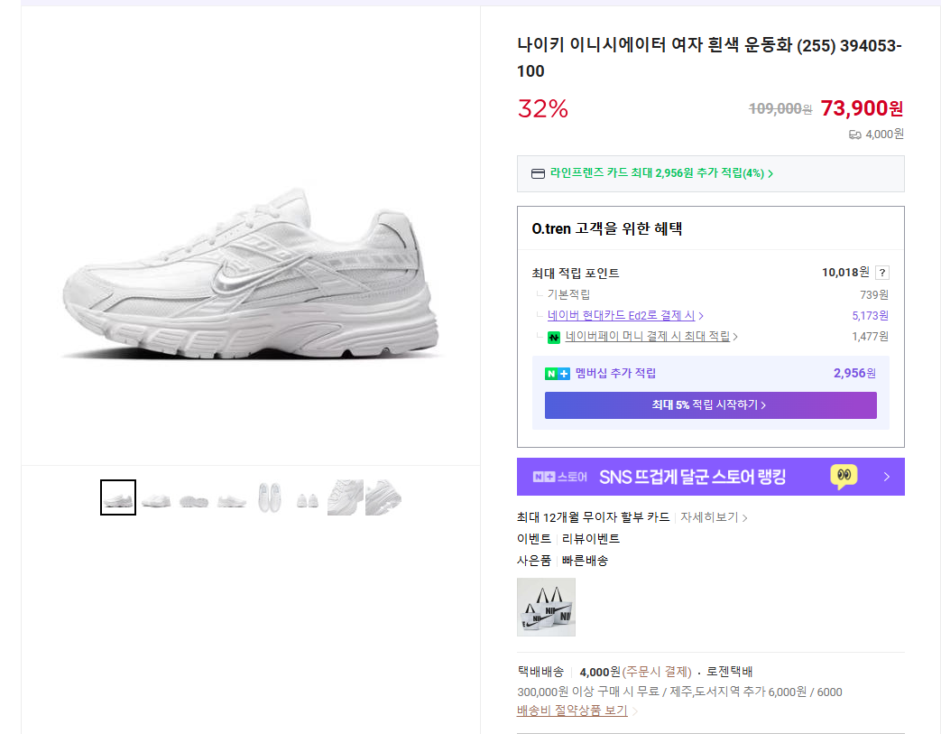 [기타] 나이키 이니시에이터 여자 흰색 운동화 (255) 394053-100