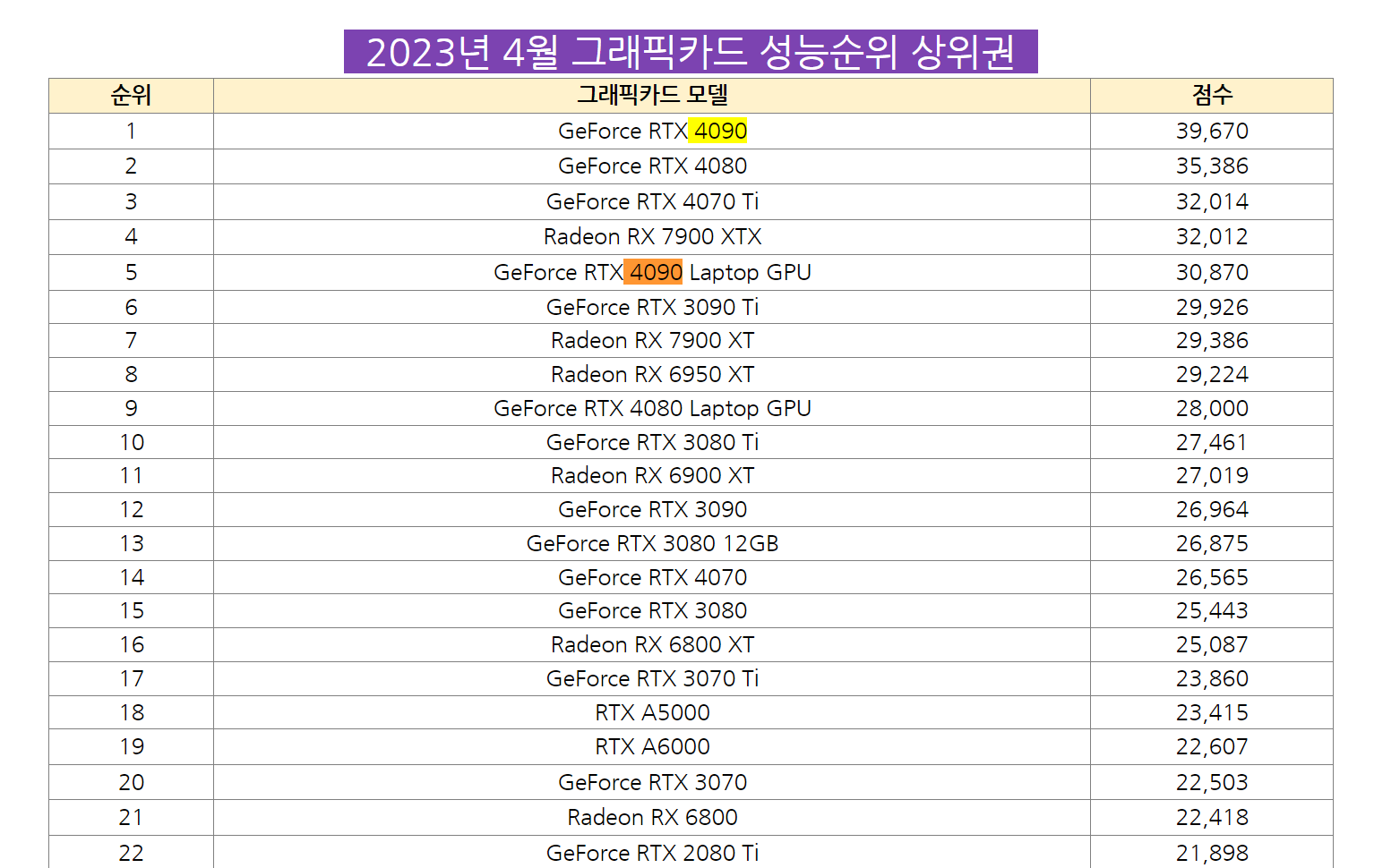 보여주신 표를 보니 3090ti보다 살짝 높은 성능이네요? | 23.08.11 17:06 | | |