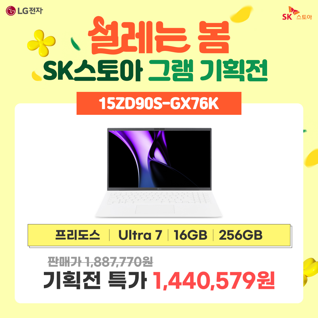 [PC/가전] [SK스토아] 4월 특가 기획전! 2024 LG그램15 특별 최대 70만원 할인!