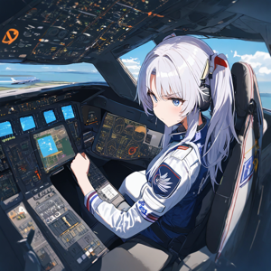 플라이트 시뮬레이터로 에어버스 A320을 운전하는 루리를 그려줘.