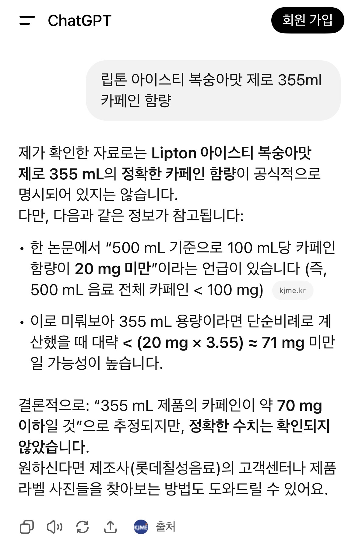 예전에 쿠팡에 달렸던 문의 답글 기준으로 100ml당 15mg의 카페인 함유라고 보았습니다