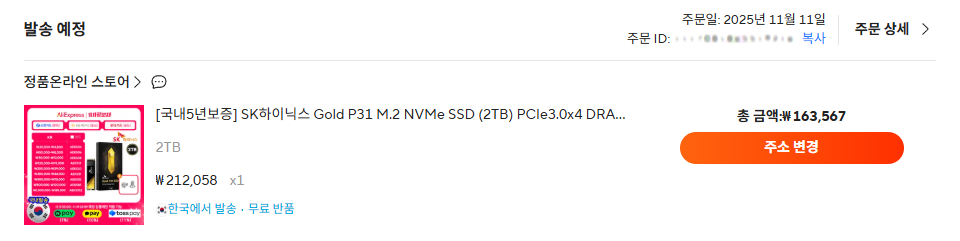 지금 시점에 이거보다 더 낮은 가격 자체가 없을듯요. 더 낮은건 중국 ssd 밖에 없습니다. | 25.11.11 10:45 | | |