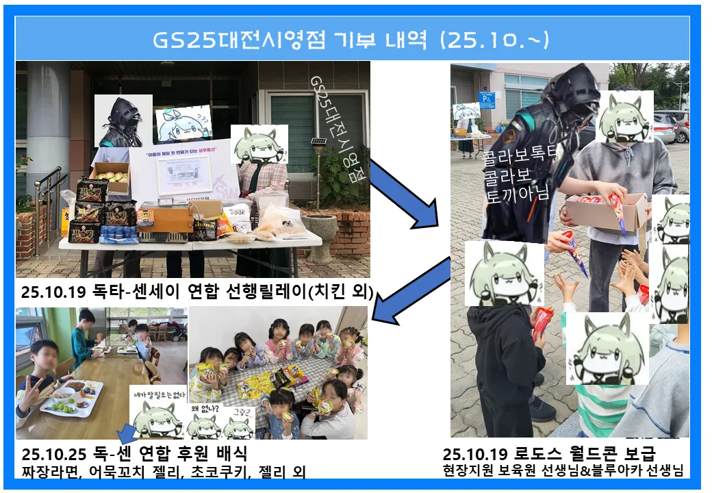 선행릴레이(10월 기부) 중 시온보육원 기부는 명일방주 독타 단독기부가 이루어졌습니다.(사진 미포함)