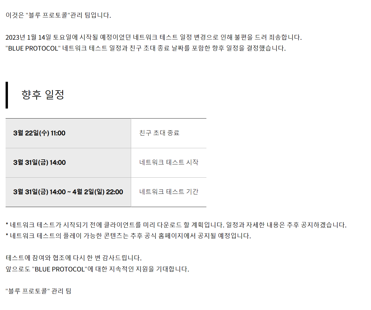 [정보] 네트워크 테스트 일 발표 [일섭기준]