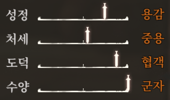 제가 도덕이 중용 이상인데 성정이 신중, 수양이 침착이라 맞습니다 선택지를 골라도 취소하겠습니다 말해버려서 조규 호감도가 안 올라가지고 니교 선택지가 막히더라고요 성정 때문인지 수양 때문인지는 모르겠네요