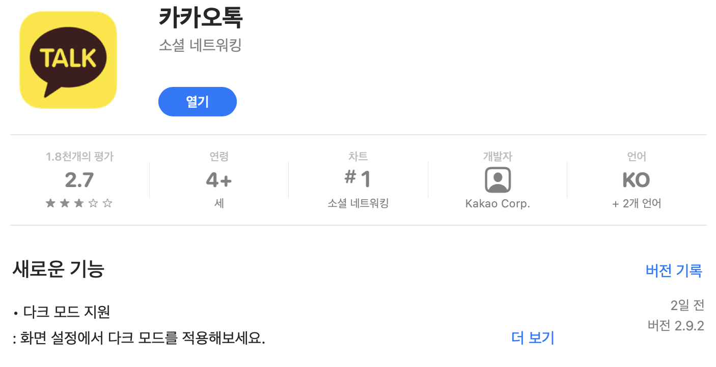 맥OS도 다크모드 있는데도 카톡어플은 다크모드 지원안했고 이번에 지원하게 되었네요. | 21.05.28 10:22 | | |