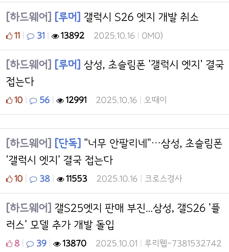 한국 언론은 테크 기사조차도 프레임을 씌우니 갤럭시 아니면 다 나쁘게 씀 갤럭시도 s25 엣지 완전히 망했잖아