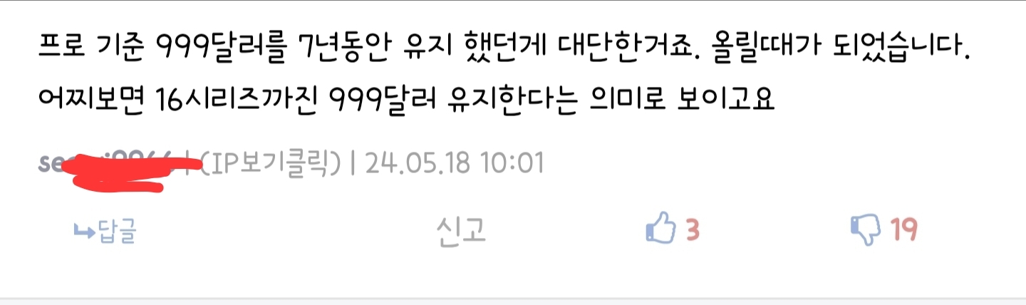 어디 제품 팬분은 기우제가 아니라 가격 인상 할때가 됐다고 호응하던데요; 물론 엑시 대신 스냅 탑재는 환영인데 가격인상은 ㅜㅜ | 24.09.02 14:45 | | |