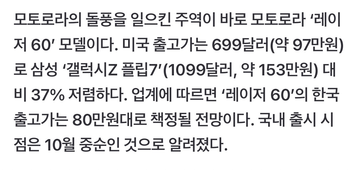[하드웨어] 美 폴더블폰 1위 모토로라, 접는 폰 ‘레이저 60’ 10월 중순 국내 출시 [4]