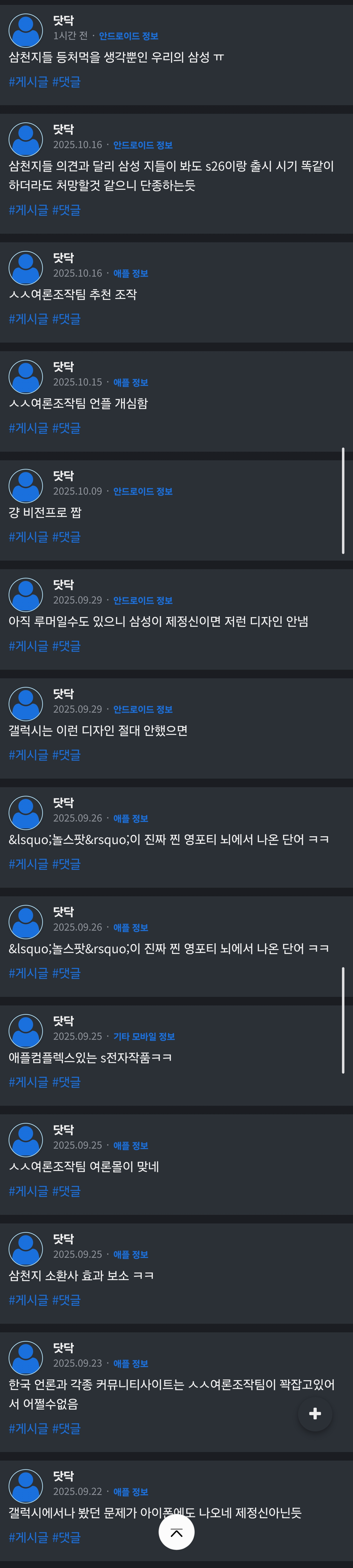 여론 조작이 아니라 님이 과한 거예요. 삼성 뻘짓 까는 것과 별개로 당신은 누가봐도 망상에 과몰입러 같아서. | 25.10.17 12:51 | | |