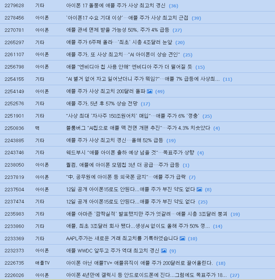 이것도 맞는거야???? 애플 주가 오른것도 모바일 소식에 올려야해??? | 26.02.24 15:04 | | |