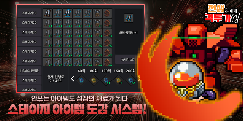 이 게임의 핵심은 성장 방식의 다양성이다. 장비마다 붙는 옵션이 모두 달라 파밍할 때마다 새로운 가능성이 열리고, 수집한 장비는 도감으로 연결돼 영구 능력치를 올려준다. 반복의 흐름이 지루하지 않은 이유다. 파밍, 강화, 등록의 루프가 매끄럽게 이어져 성장의 맛이 꾸준히 이어진다.