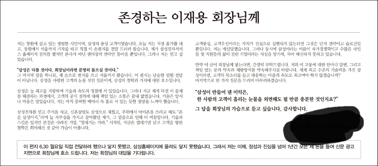 [시사] 회장님 창원고객이 간절한 손편지 읽어주세요