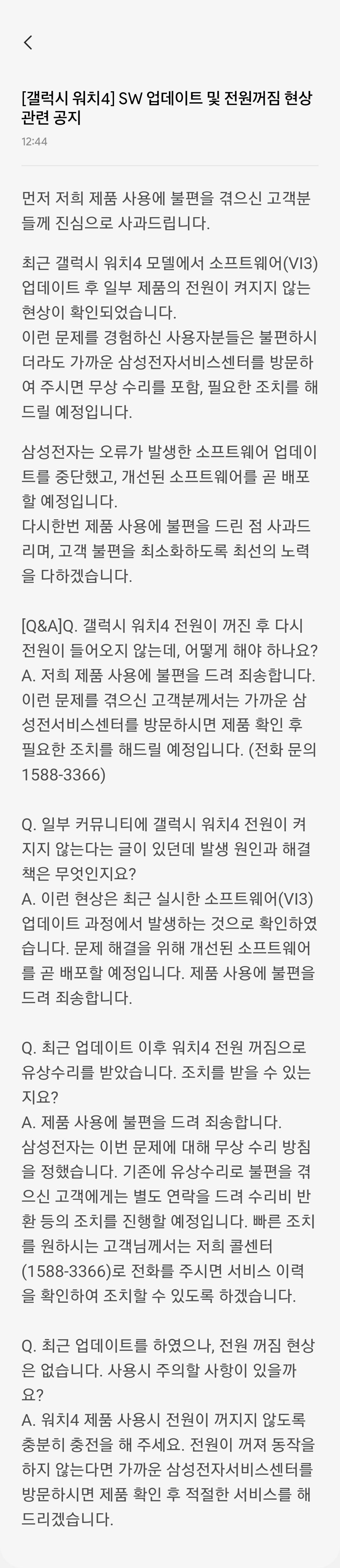 [정보] 갤워치4 메인보드 돌연사에 관련된 삼성의 공식 입장문