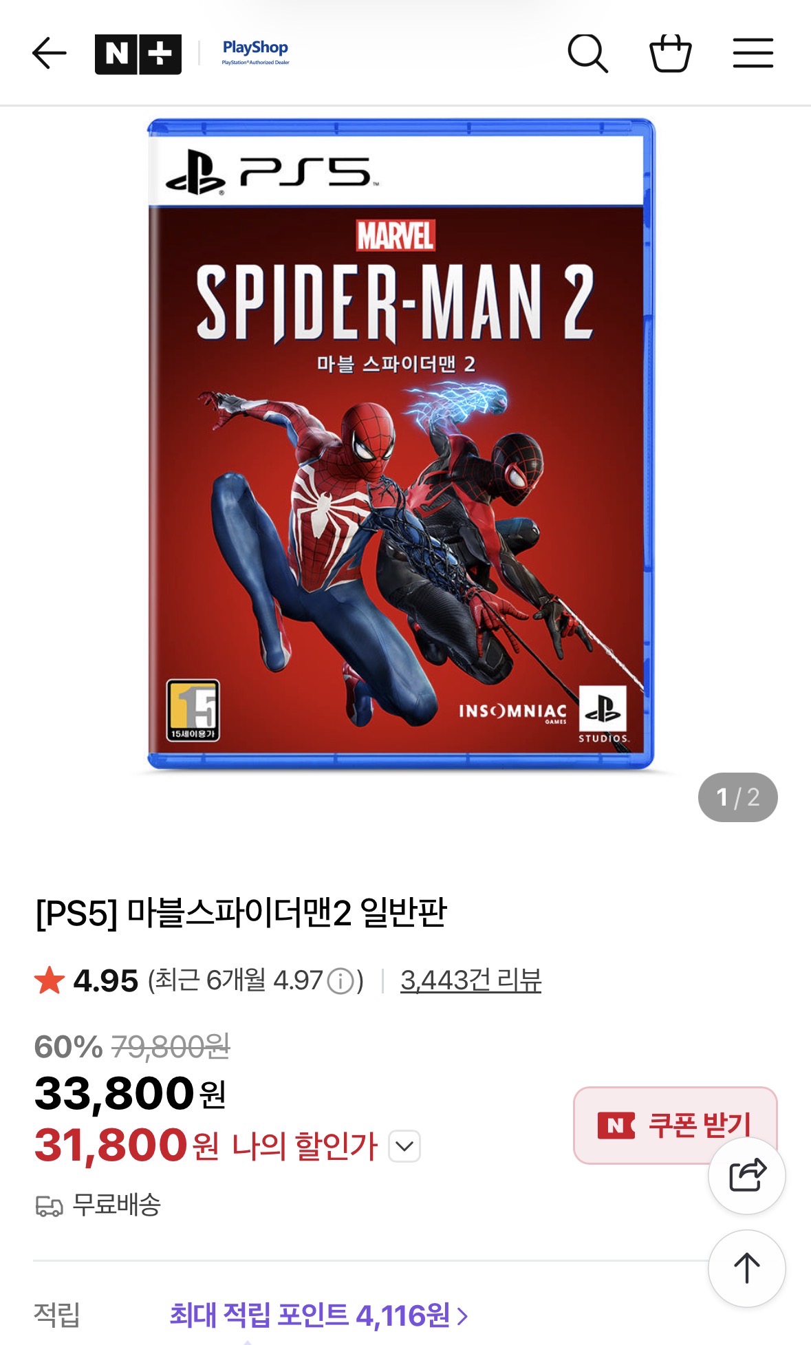 [게임S/W] [지마켓] 마블 스파이더맨2 | 33,800원 [10]