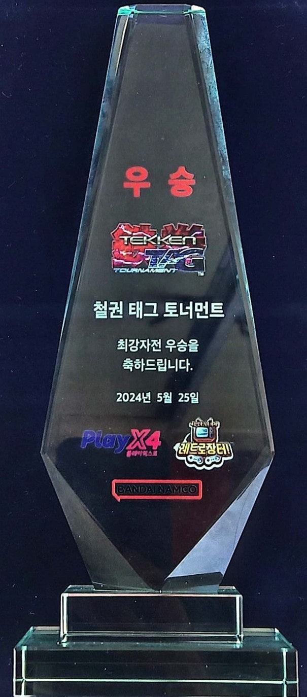 검떠: 이야~ 트로피!! 선명하게 박혀있는 철권 태그 토너먼트 로고와 반다이 남코 로고!!
