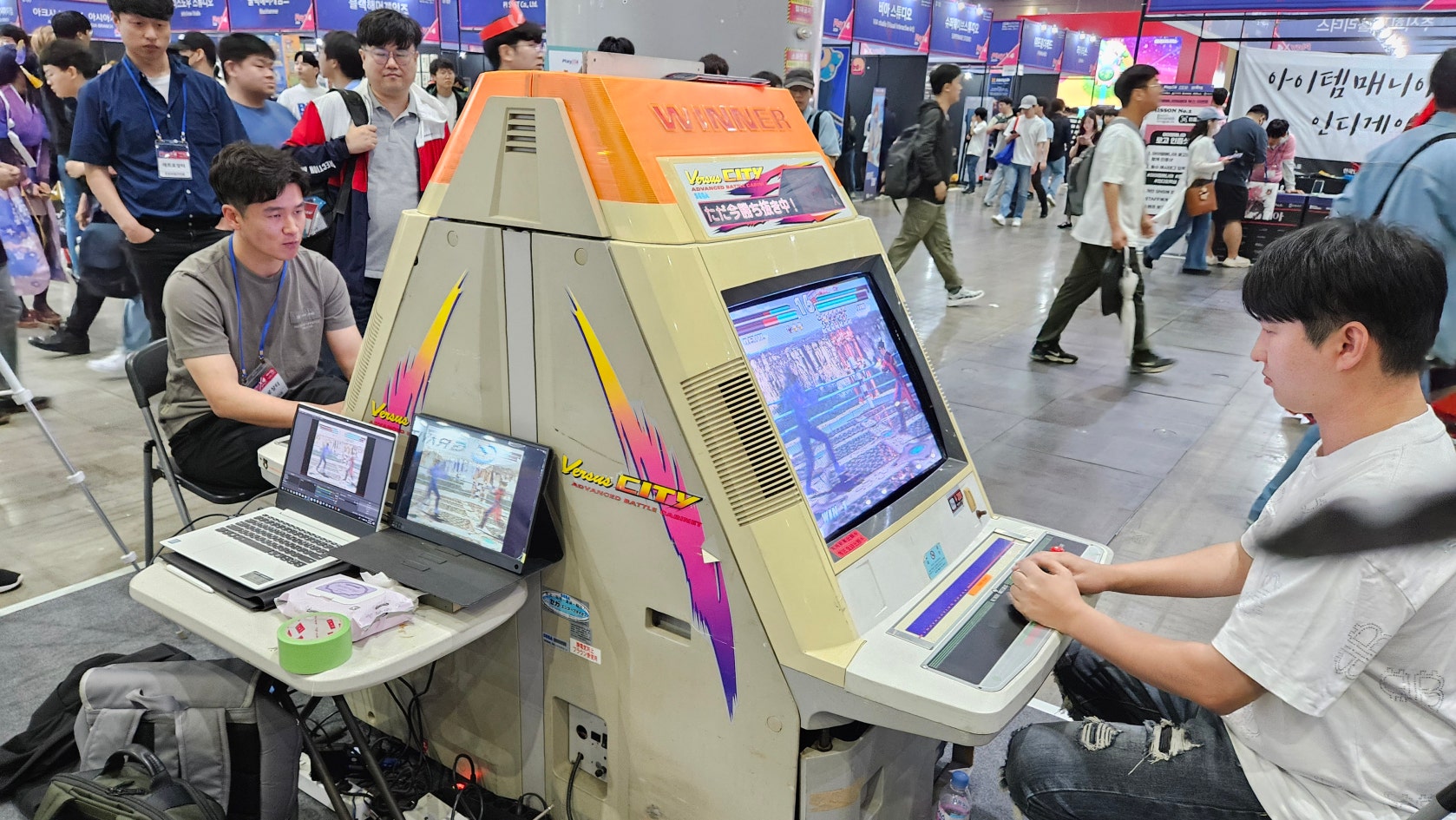 검떠: 우와. 대단한 열기가 느껴집니다. 여기에서 격렬한 대결이 있었군요. 사진만 봐도 옛날 노량진의 정인 오락실같은 뜨거운 열기를 느낄 수 있었네요. 아직도 이렇게 활발하게 격투 게임의 성지로 돌아가는 곳이 있다니.. 대단합니다.