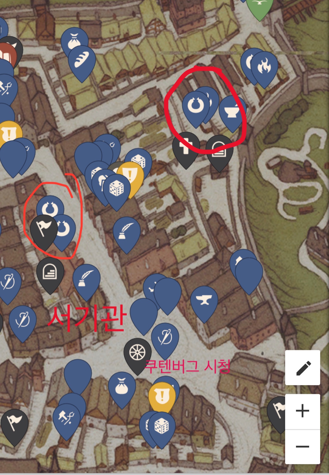 쿠텐버그 동쪽 끝에 시청 주변에 있습니다. https://mapgenie.io/kingdom-come-deliverance-2/maps/kuttenberg 각종 서비스나 아이템 위치 지도 참고하세용