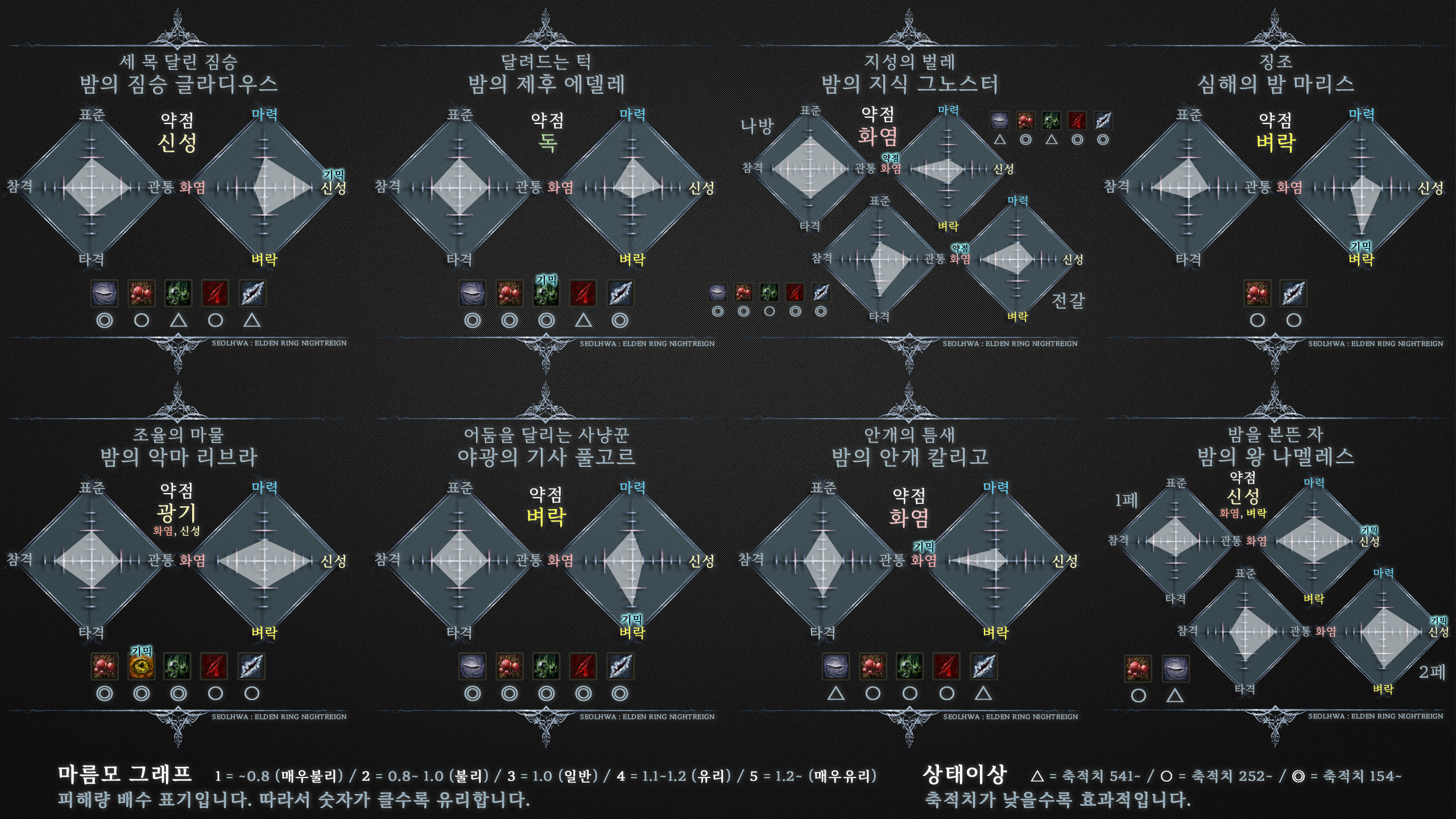 좀더 로어프렌들리한 모든 보스 약점속성표를 제작했습니다.