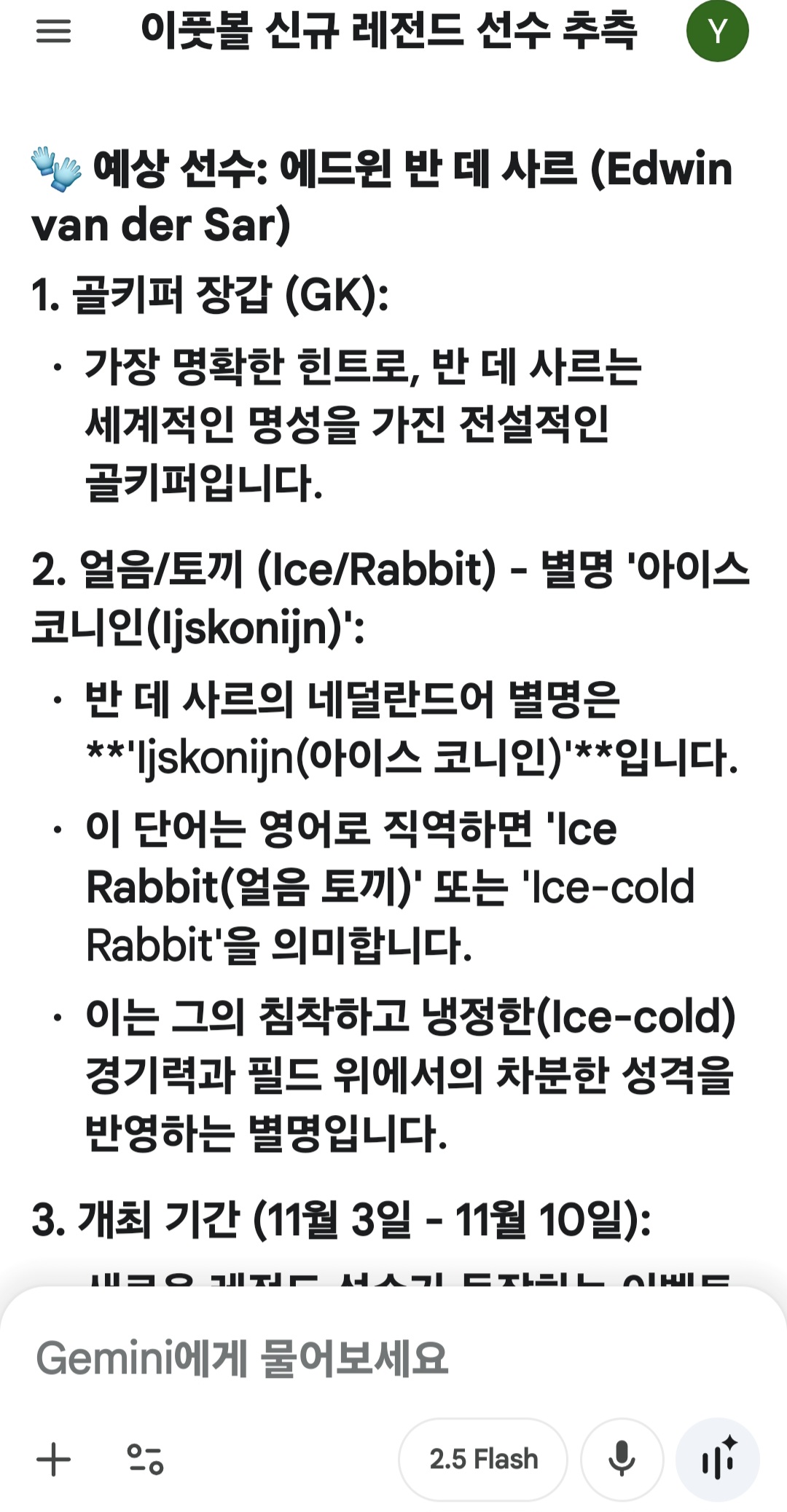 저는 박지성으로 해축 입문해서 슈마이켈 보다는 반 데 사르가 더 반갑네요 ㅎㅎ | 25.10.30 12:12 | |